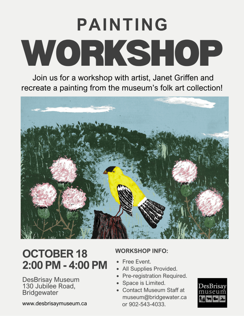 Join us for a workshop with artist, Janet Griffen and recreate a painting from the museum’s folk art collection!